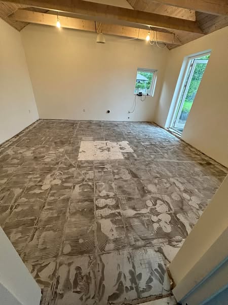 - Belægningen kan lægges ovenpå dit eksisterende gulv, beton, fliser etc.